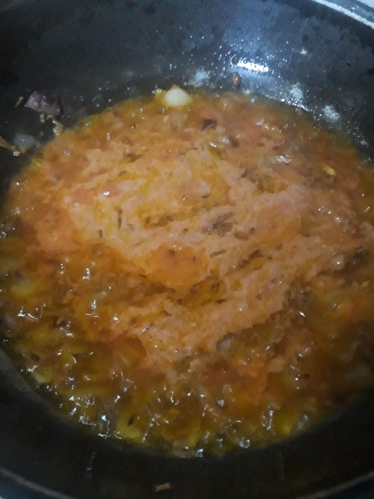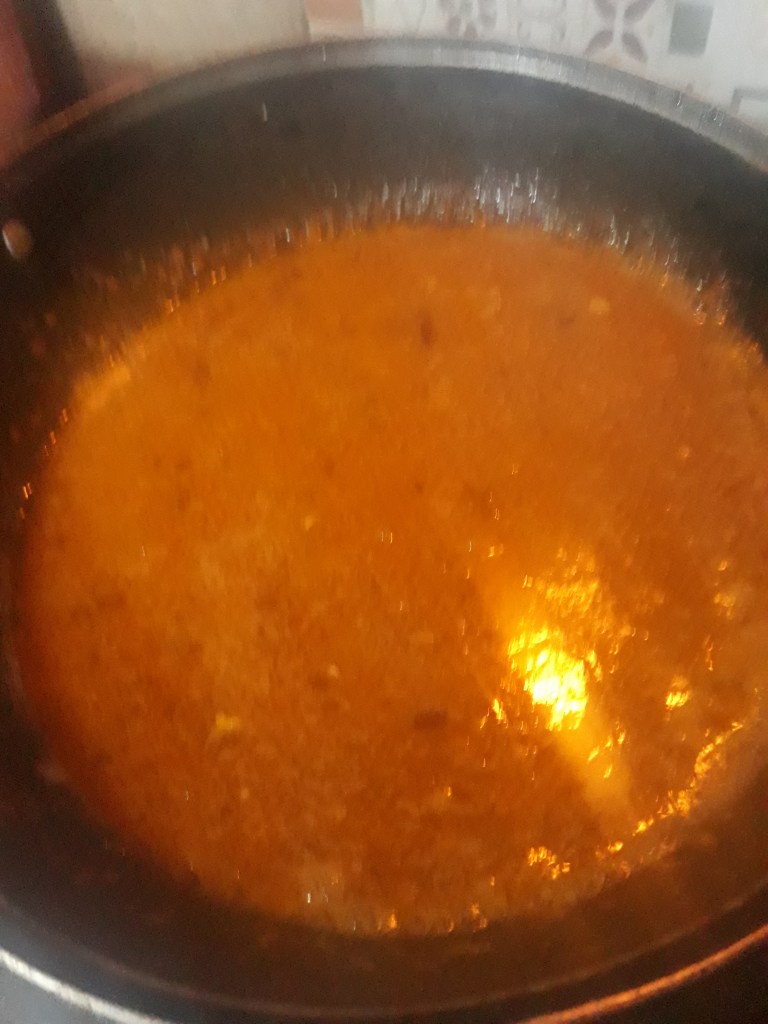 7. Heat the pan ingredients till oil separates from the mixture. As in image below: