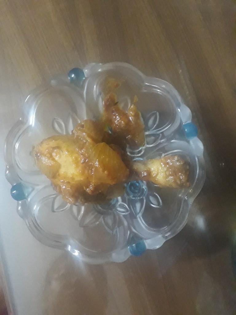 - Heat water and put the frozen chicken in water. (6 leg piece recipe here). Put 3 table spoon of salt to clean it properly.