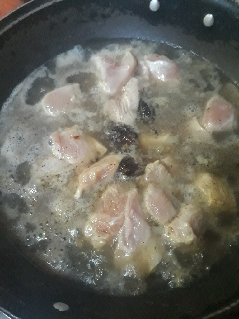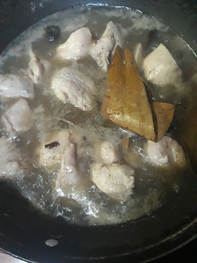 Step 3. Put chicken pieces in pan with water. The following added spices I added: