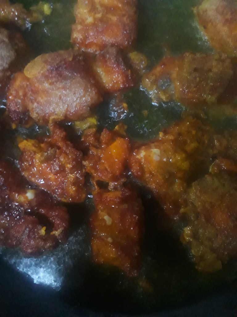 Step 3. Heat oil–refined oil- 4 serving spoons to make fish dip in the frying pan oil.