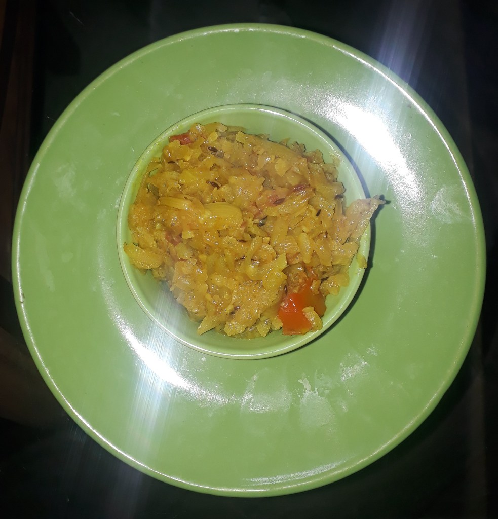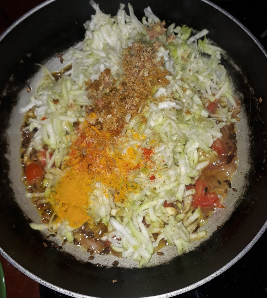 Some water added and heated with closed lid on slow flame