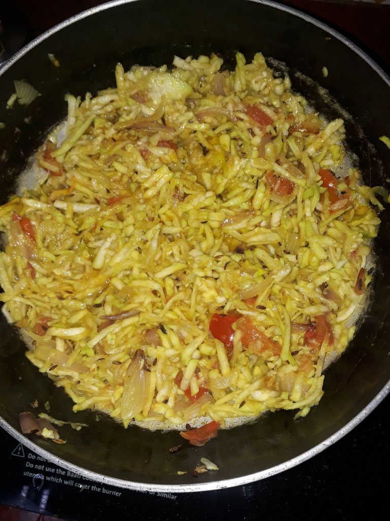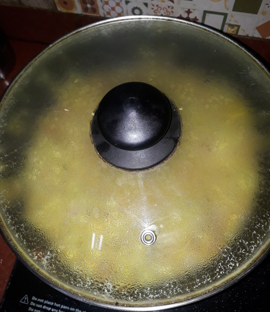 - Keep lid of frying pan closed for few minutes, keep opening it up and mixing it in between