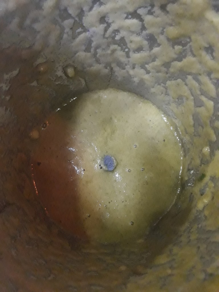 Step 3. Mix chopped apples, and fresh green mint in mixer-grinder for one minute by adding half glass water in it. Add 4 spoon of sugar in it as well.