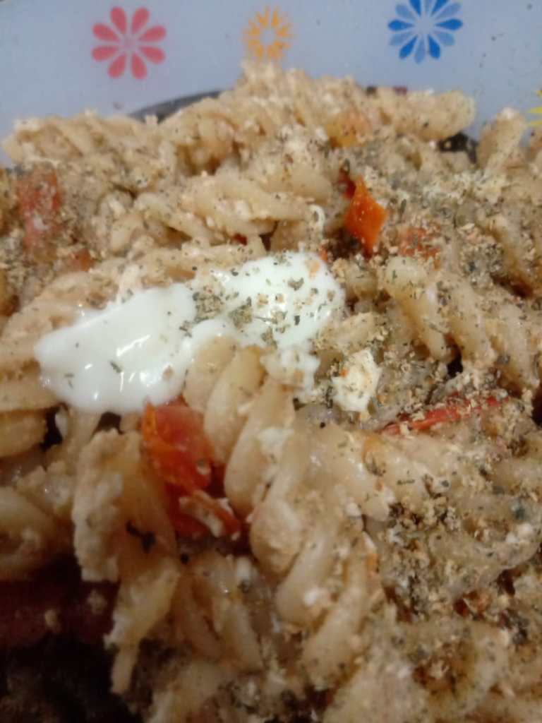 Step 3. Its ready and tasty, bit ripe too. Put Pasta Seasoning and enjoy with melting cheese!