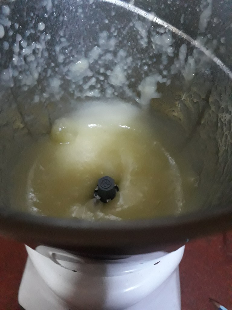 Step 4. Once steam goes out, let it cool. So you don’t have to do anything in kitchen till then. Once the water and pulp is at room temperature, take out the big pieces and put in mixer grinder. [cooling as mixer can blow if you switch it on with hot things]. Keep water in cooker only to be mixed later.