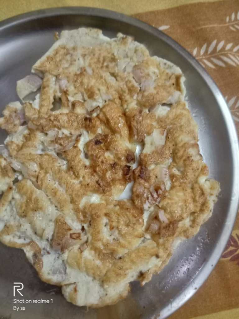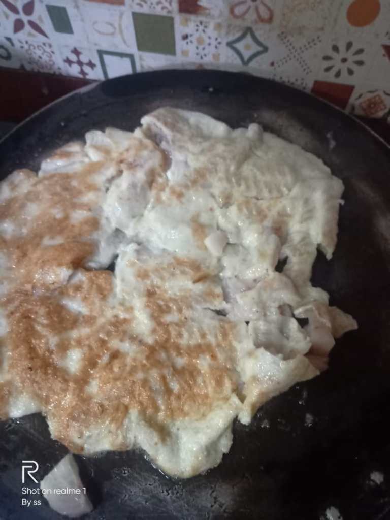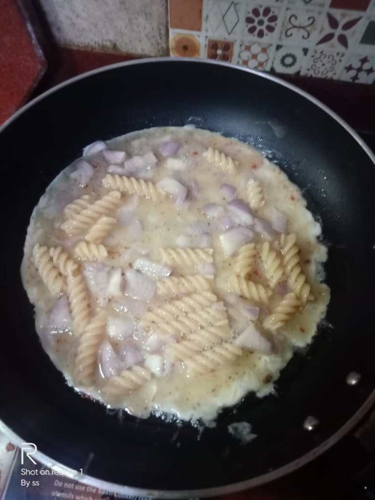 Last time it was egg Pasta, where egg was mixed in excess of Pasta. This time it is Pasta Omelette where Pasta is dipped in excess of egg in comparison to Pasta.