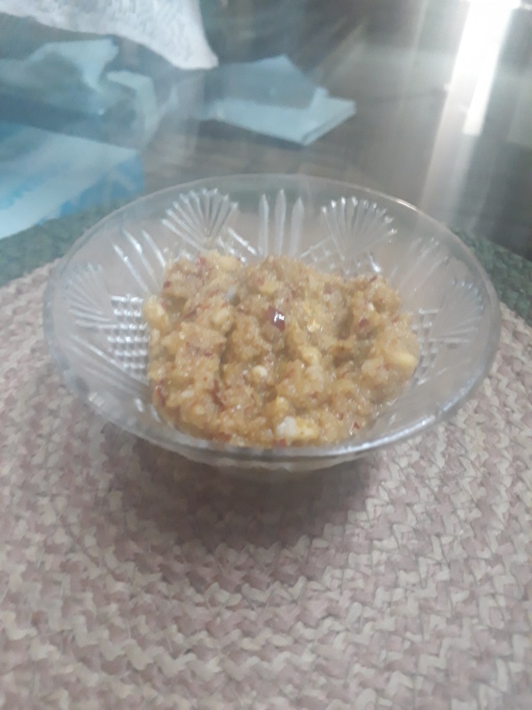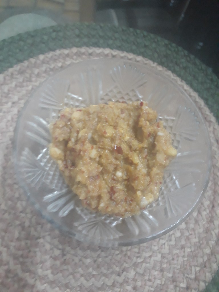 Nutritious, Spicy, Chili, and opens up all the senses ! Its raw red chili and garlic paste!