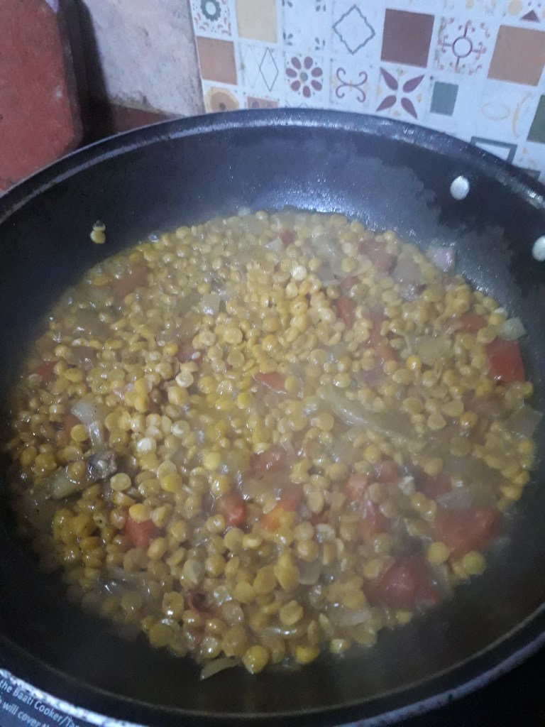 6. Immediately add to it properly washed 1 bowl of split chickpeas.