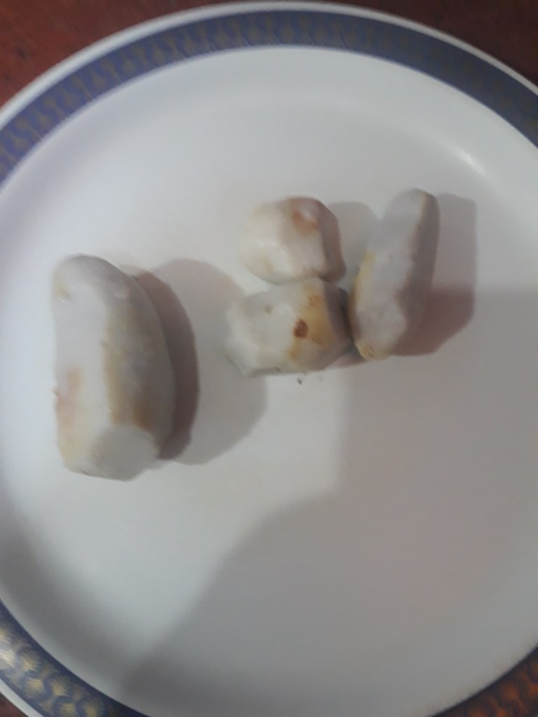 Step 1. Take 150 grams of fresh taro roots. Boil it in water, covering all taro roots. Give one whistle in pressure cooker. Let the steam go out of cooker.