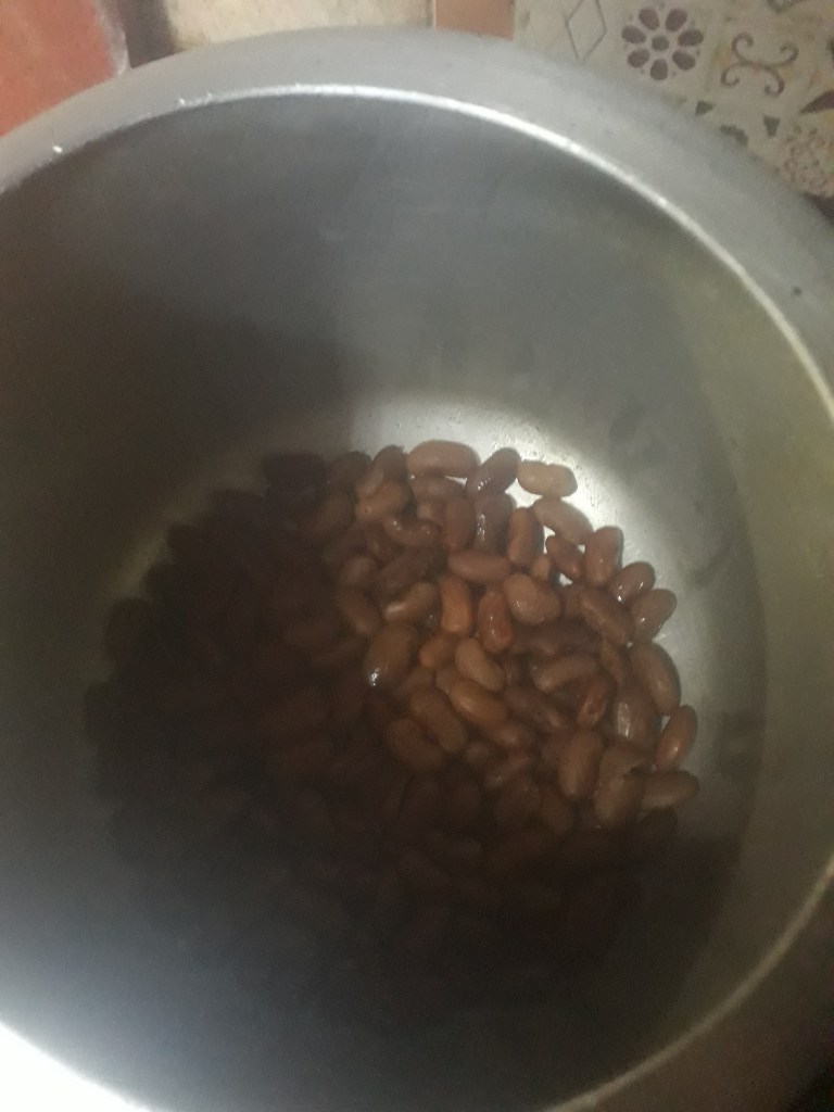 Step 2. After 6-7 hours throw the water, clean it again. And then put these soaked kidney beans in pressure cooker, with equal amount of water. lesser can burn and spoil the beans. Take some extra water, all beans should be dipped in water fully.