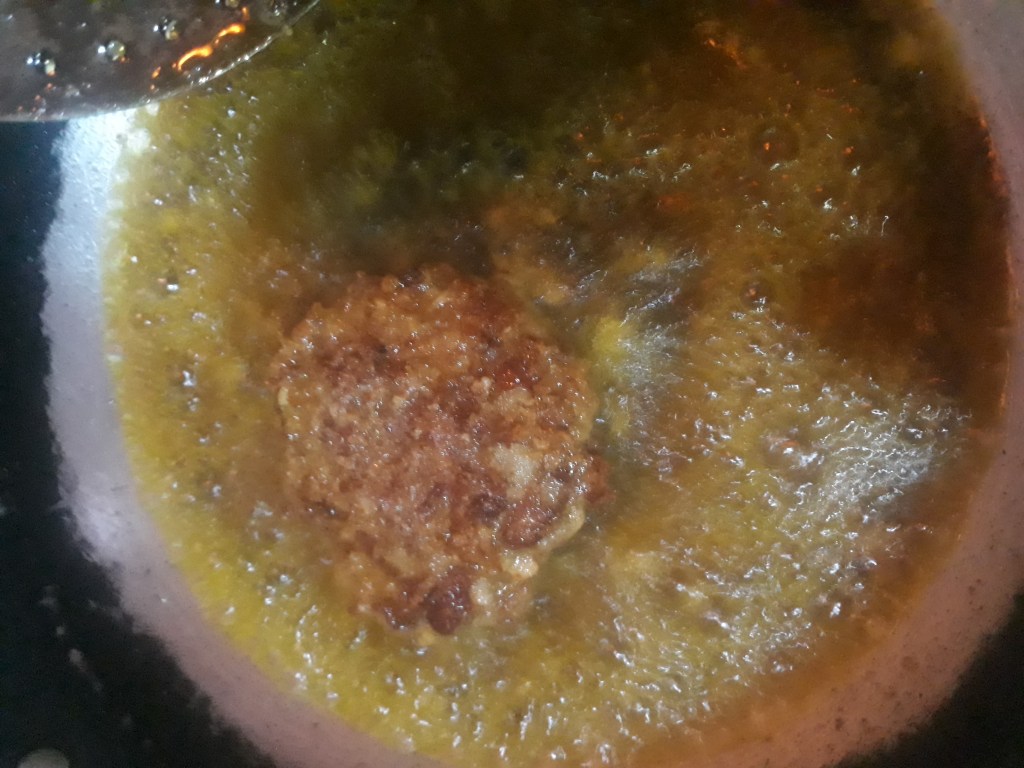 Gram flour leaves slightly bitter taste– I had no other option. See what taste and suits you and share your recipe with what you choose to add to the mixture— corn flour or refined flour or bread crumps….. ???