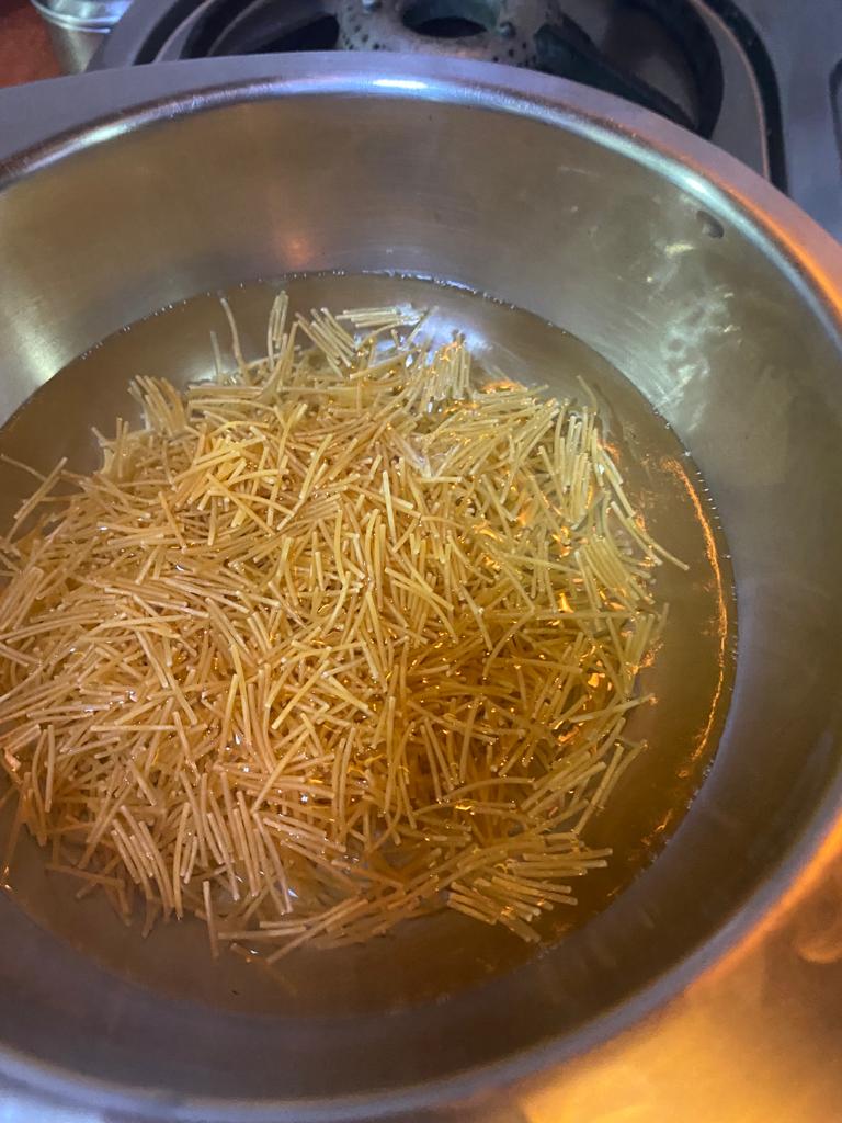 Step 7. Take 2 bowl of dry bambino vermicelli and heat it in 2 glass of water.