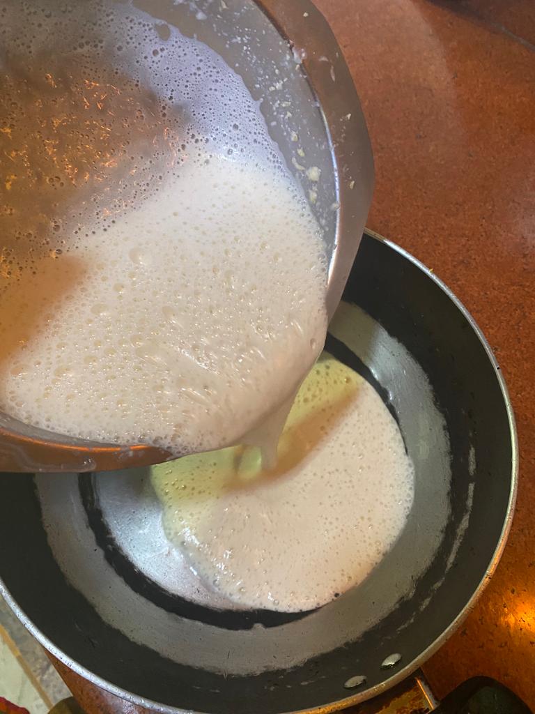 Step 6. Beat it well with blender. Empty it in a frying pan.