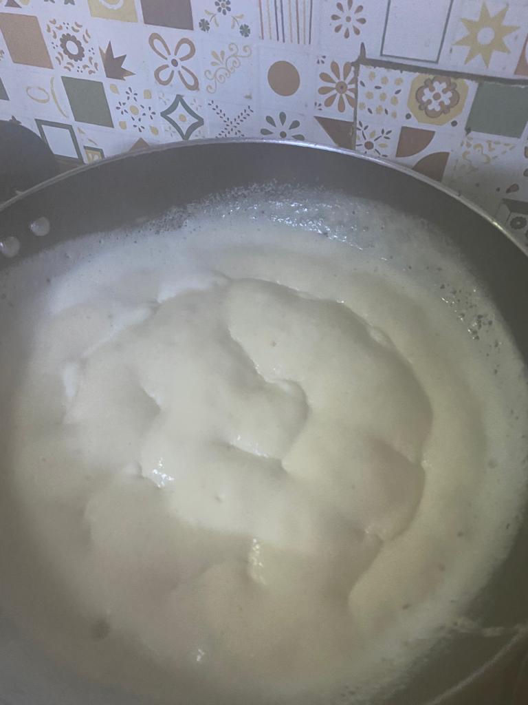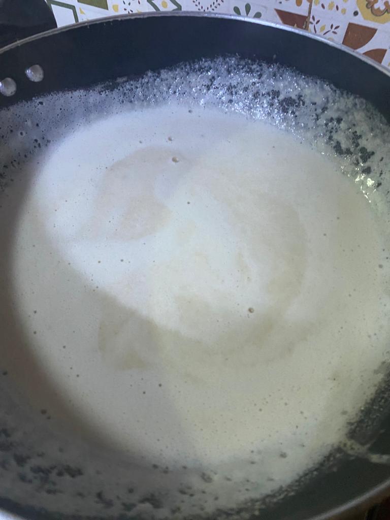 Step 10. Peanut milk will solidfy in 2 minutes time. That is when we need to close the heating.