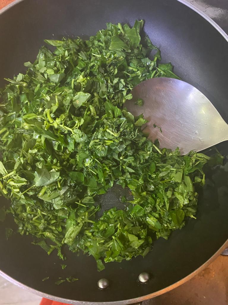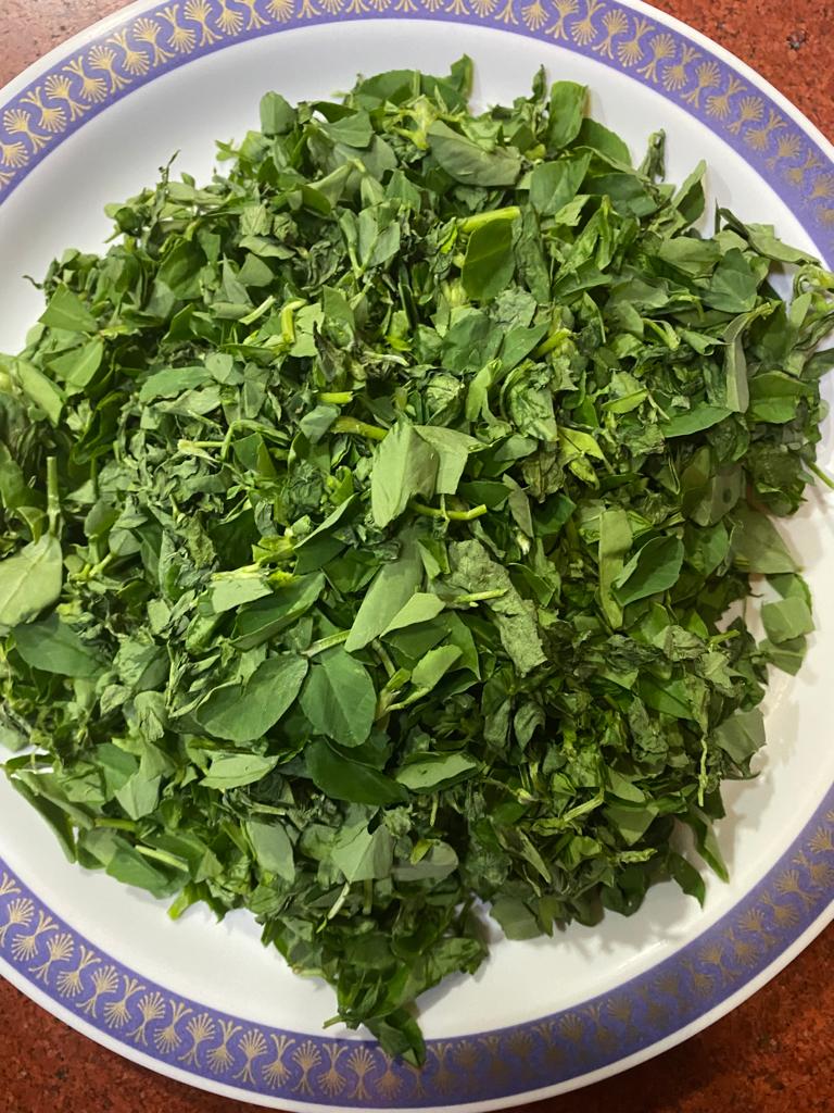 Step 1. Take the green leaves – I took only fenugreek leaves, I like its taste on its own and without mixing with other green leaves. It has a peculiar taste, not very blunt kind of bitter.