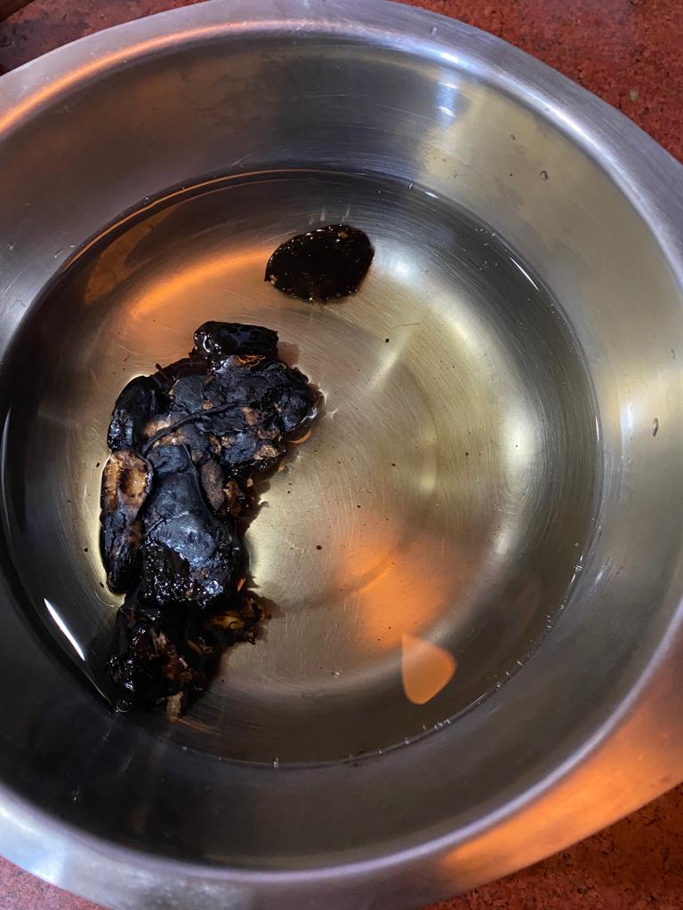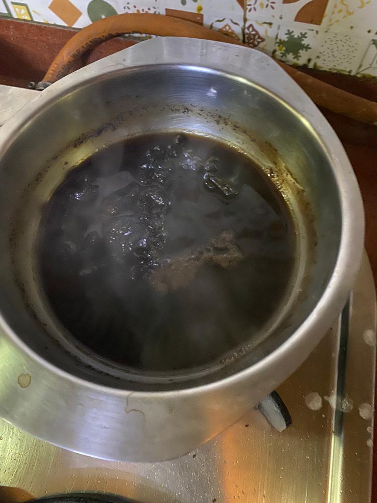 Step 2. Heat it well it changes color and water becomes thicker as shown below.