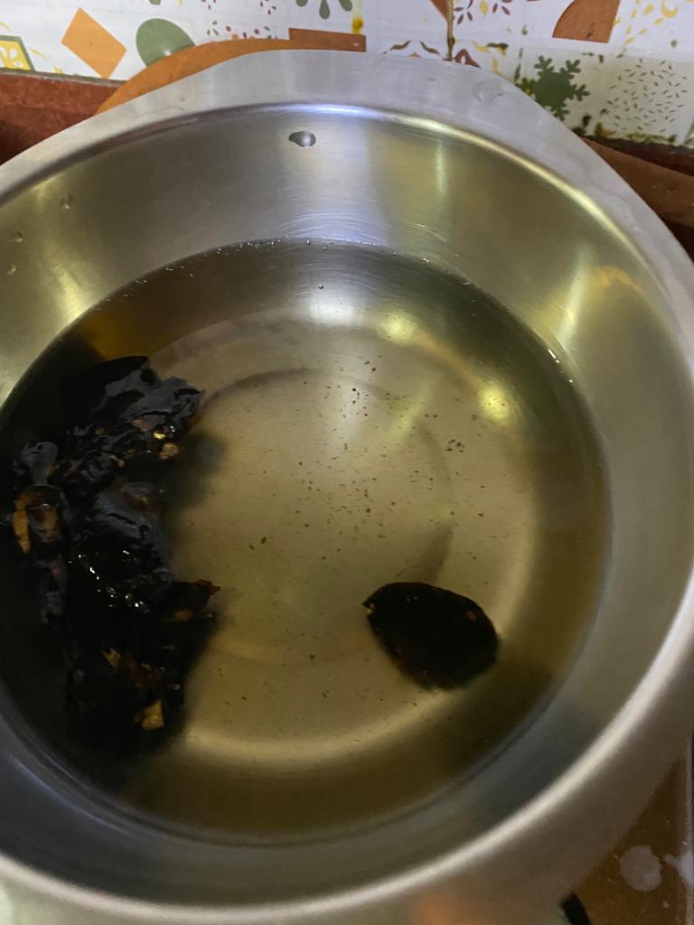 Step 1. Take few flakes of Tamarind and heat in a heating bowl in 1 cup of water.