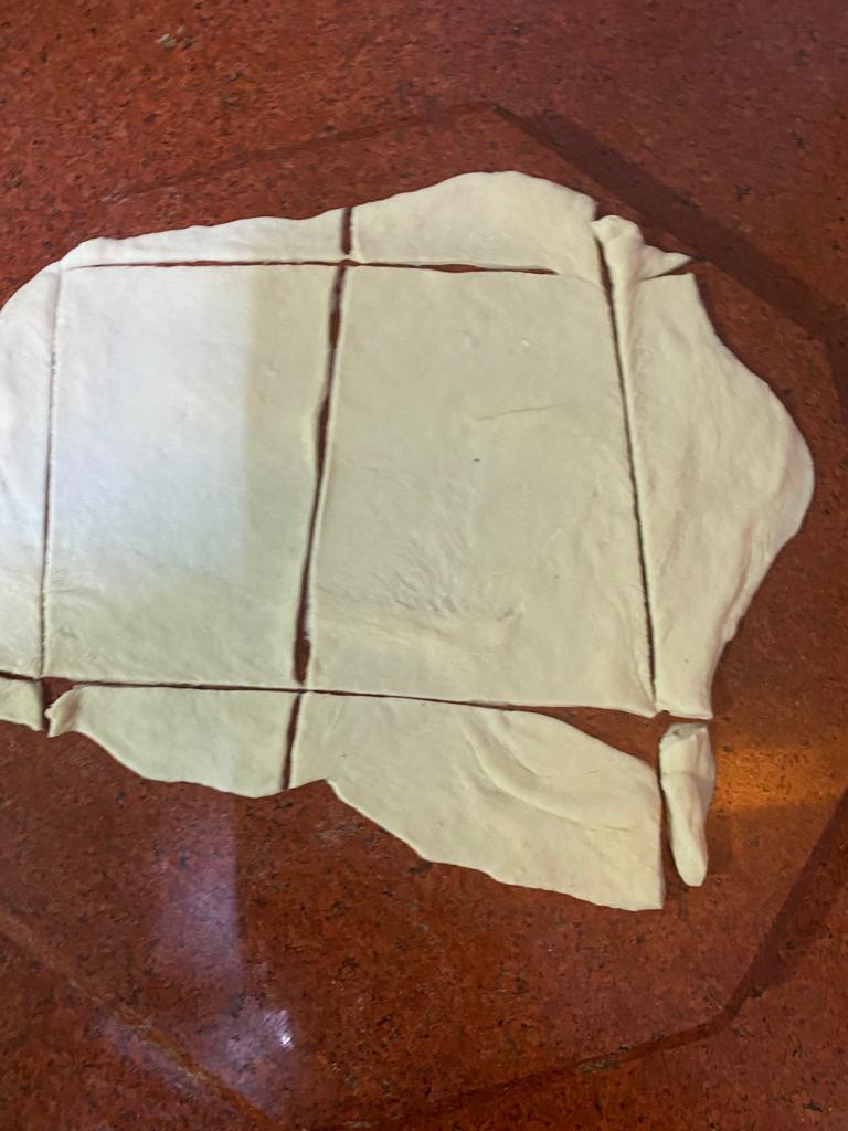 Step 3. Cut two rectangles in the expanded kneaded flour with a knife.