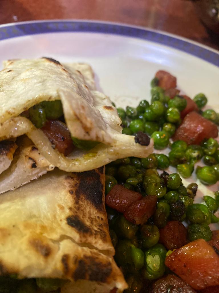 Step 12. Hold it vertical and open it and put in the stuffing’s made above of green peas and carrot.