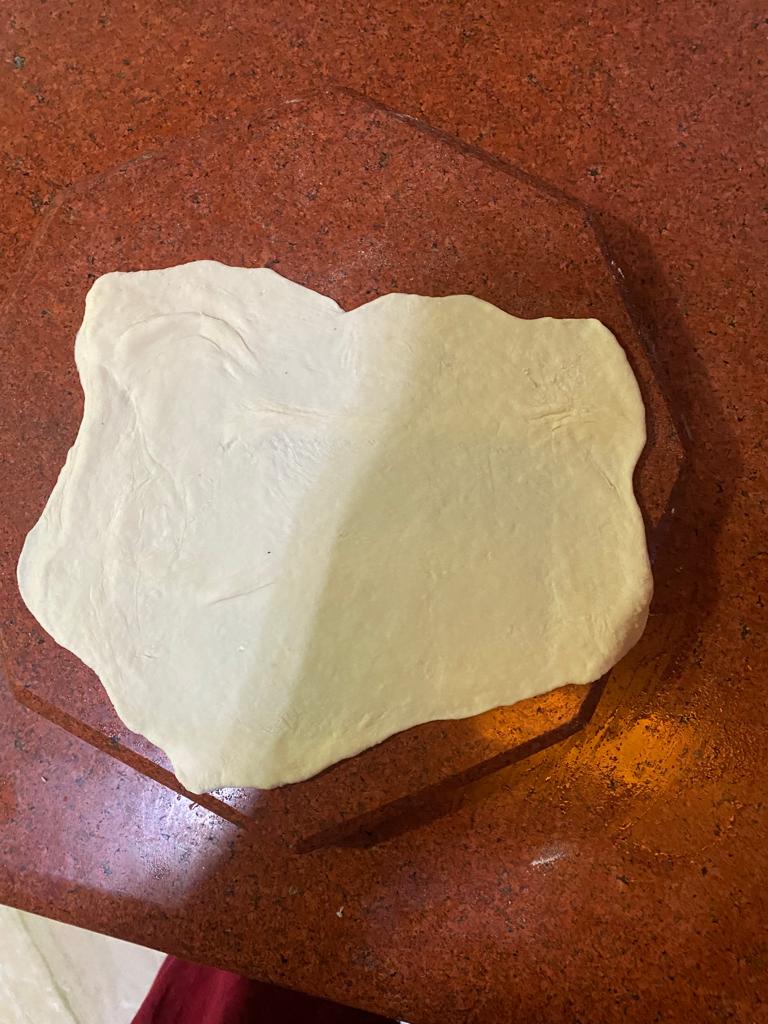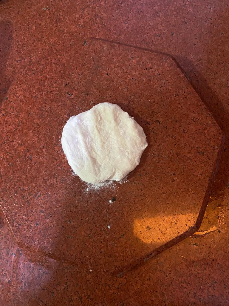 Step 1. Take the refined flour and knead it with water and make it a solid, just as one makes a knead for pizza base. However, there is no yeast and fermentation agent here.