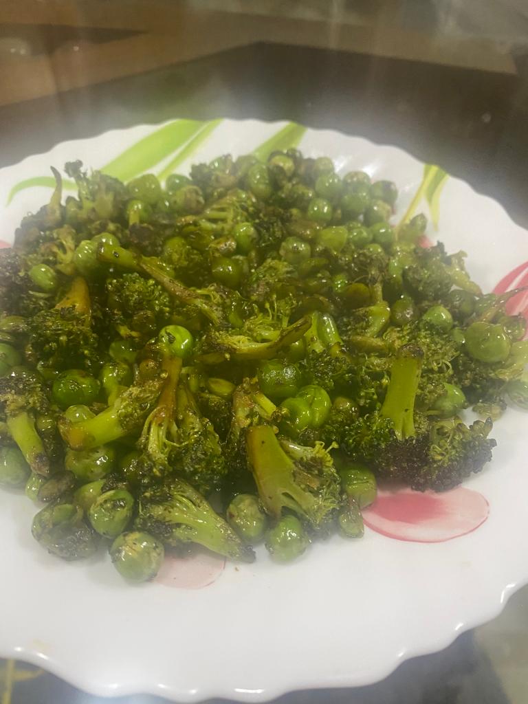 Ingredients: One small Broccoli, 1 cup of green peas, salt, chili, 3 spoons.