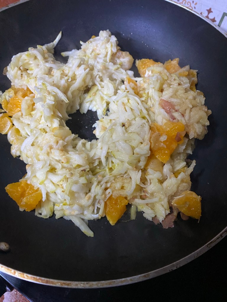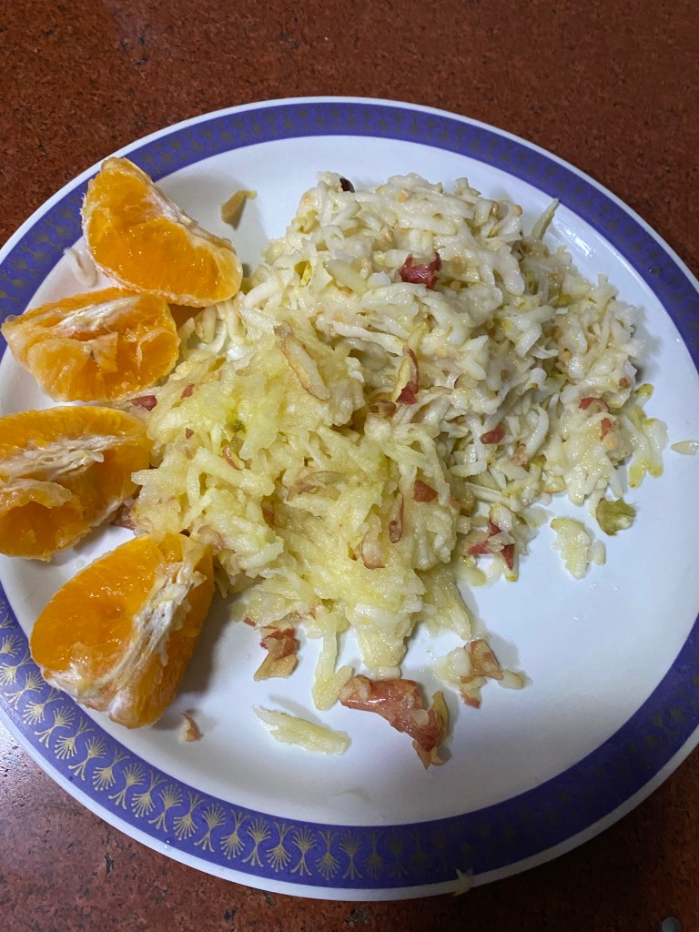 Raw fruits or mildly heated fruits as I explained here taste wonderful with a mixture of black pepper and salt. These are my tastes however and you can try- use black pepper and salt with cut fruits or grated fruits as I explained it here in this blog. And mild lemon adds to taste. And heating it as I have explained it here adds to taste even more. Steaming hot spicy fruit salad. In case you want to eat it cold, then don’t heat it rest steps are same as below.