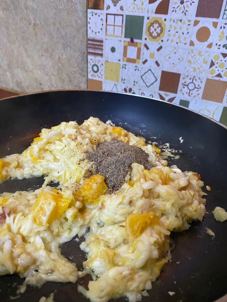 Step 6. Add Black Pepper and salt in this. Raw fruits or mildly heated fruits as I explained here taste wonderful with a mixture of black pepper and salt. These are my tastes however.