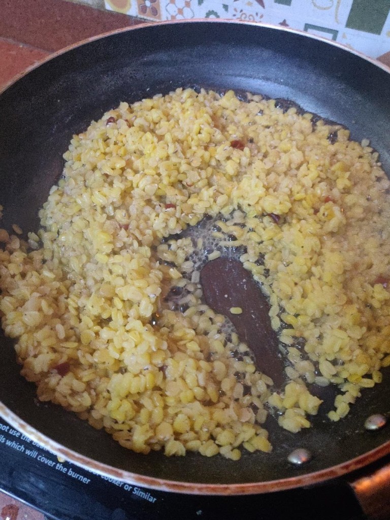 Step 6. Heat it well, keep tasting if lentils are soft to eat, you can add any kind of lentils it it. Just see it is soft enough to eat. I used yellow lentils they are fastest too cook- 5 minutes.