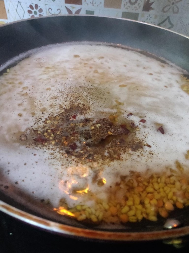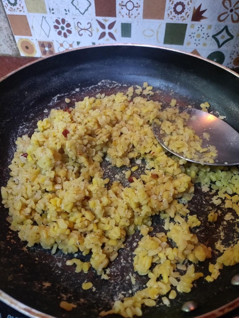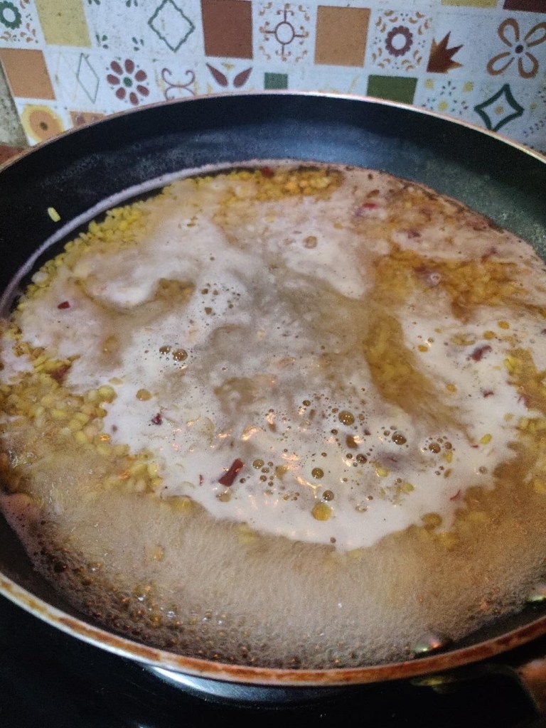 Step 7. I don’t know why form was in my pan, but I removed it all, as I didn’t liked it much, so, then, my lentils looked clean and ready, dry it fully as it will be put in the puff, so heat it more till it is dried on pan. Keep moving spatula so that it does not dry up.