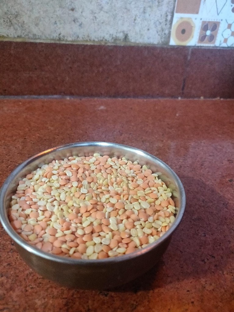 Step 1. Take the fillings you want to put in fresh puffs of refined wheat flour. I took one bowl of yellow lentils.