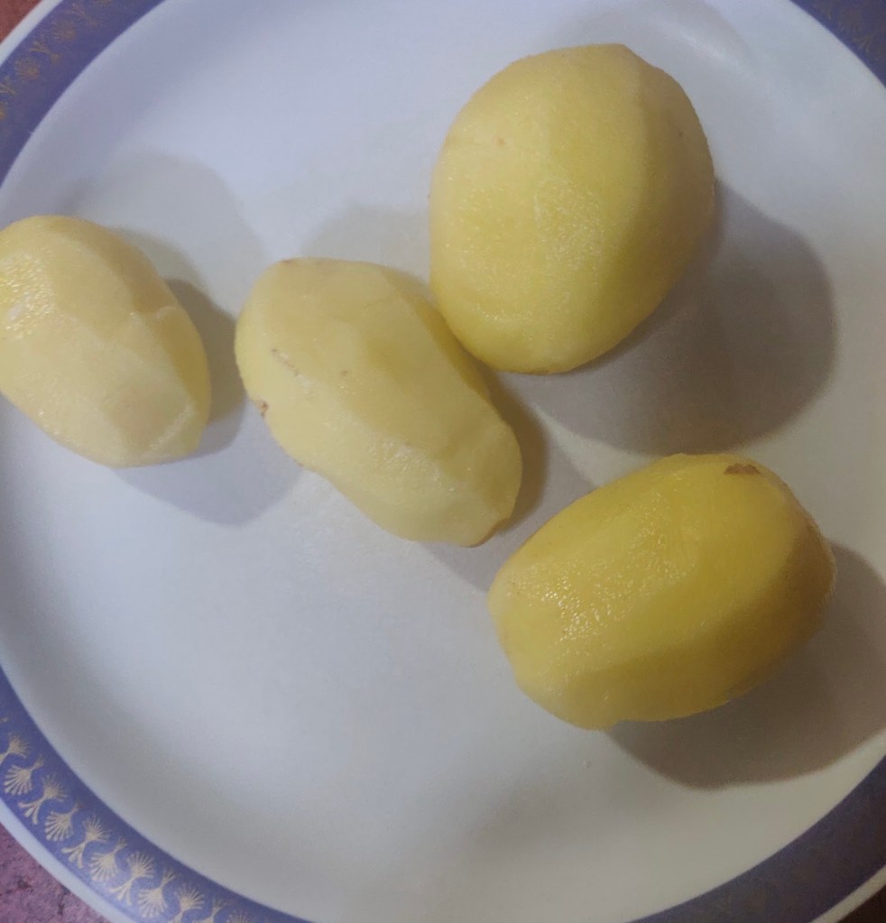 Ingredients: 4 potatoes, half bowl split chickpeas, red chilli, black pepper, salt.