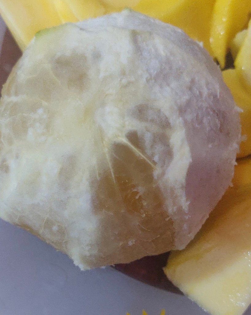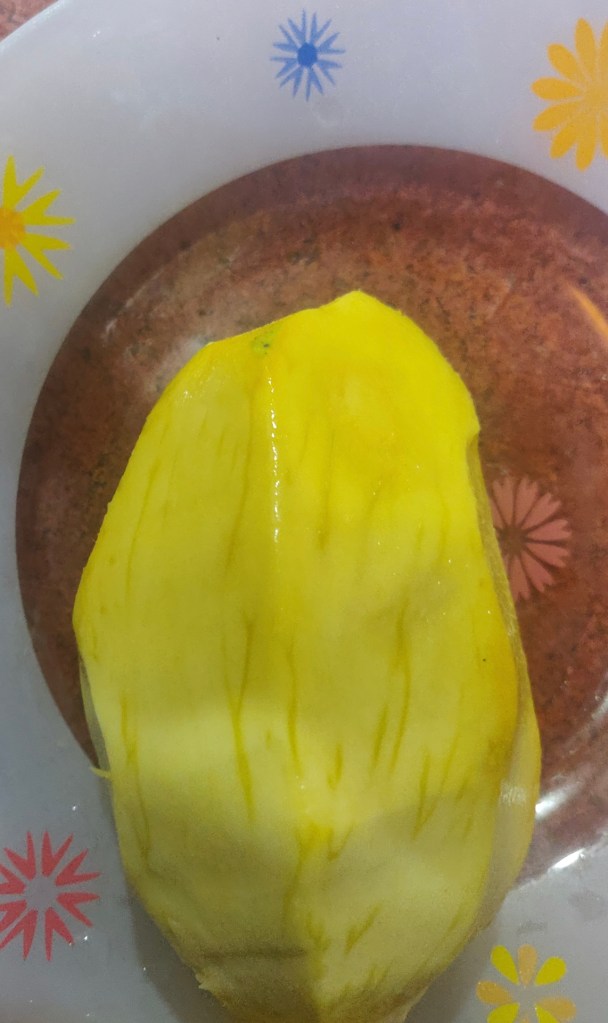 Ingredients: One Citrus Limetta, also called Lime or Mosambi, one mango and 1 tablespoon sugar.