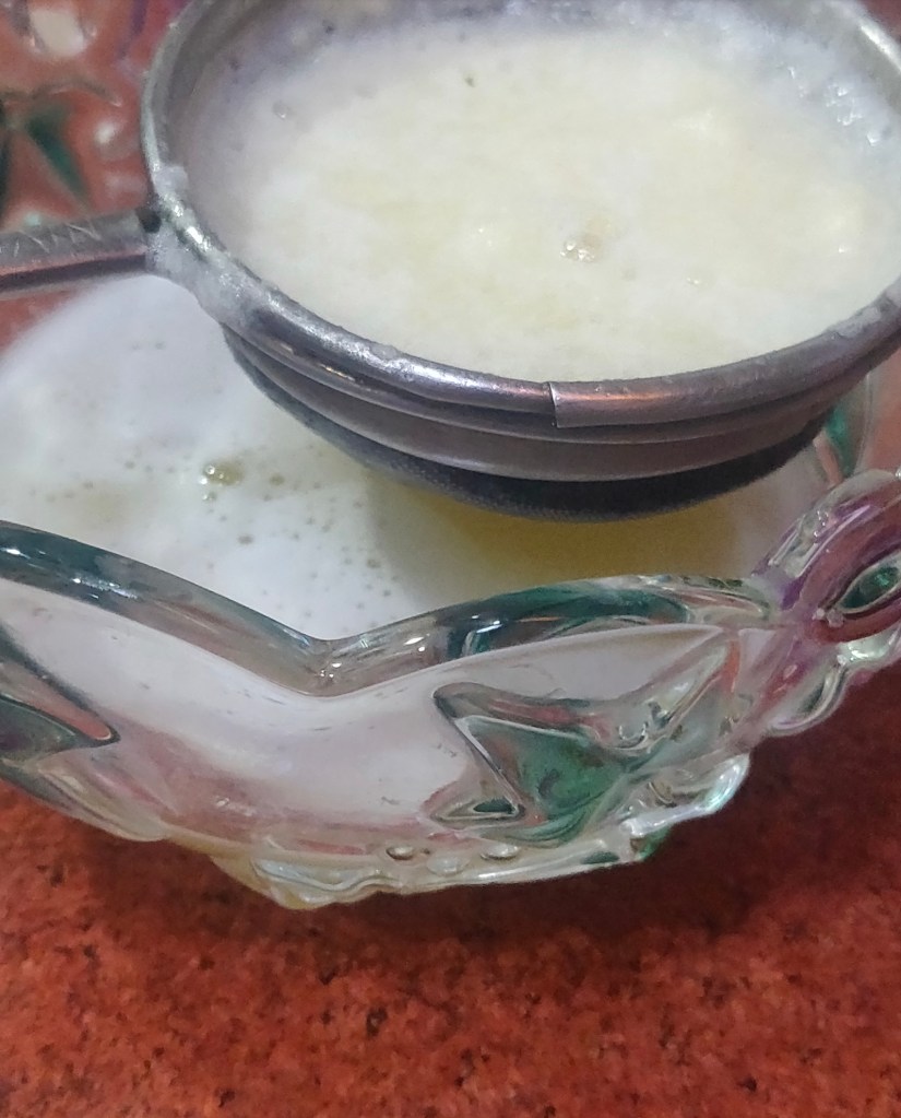 Step 5. Put the cut Limetta in grinder or use other juice extraction instruments, I used grinder, and then used a sieve to remove the thick part.