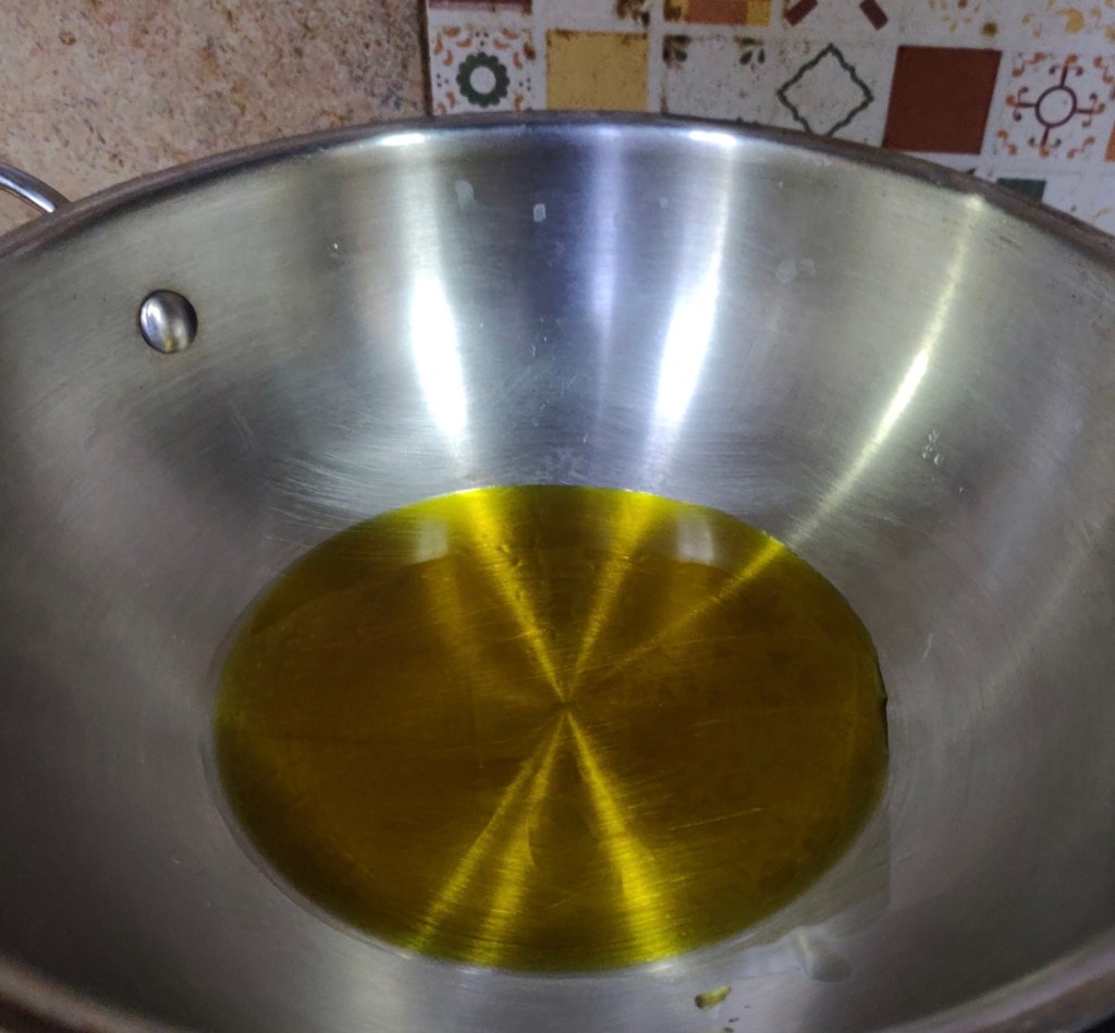 Step 4. Put black pepper when oil is heated with very slow flame, then put the chopped vegetables, mix well, then add red chilli, cut in small parts, salt, mix well.