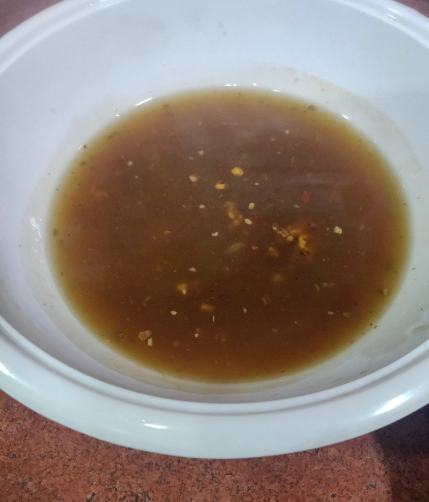 Step 6. Take 3 cup water and hot and sour Soup, heat it in pan keep mixing well, as per instructions. You can use your own cooked soup as well.