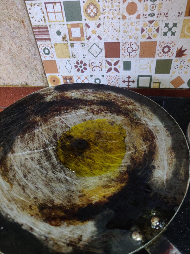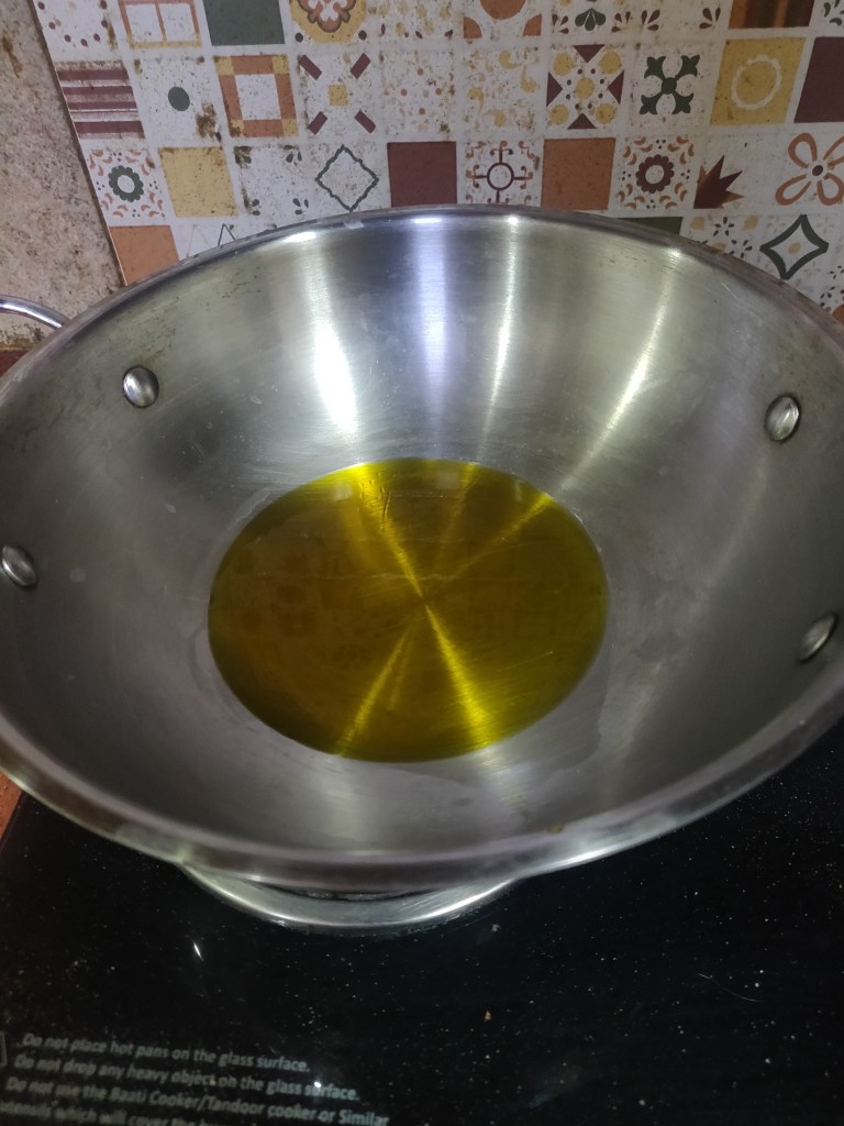 Step 6. Take a pan, heat 3 table spoon of oil in pan, heat oil and close the stove after that.
