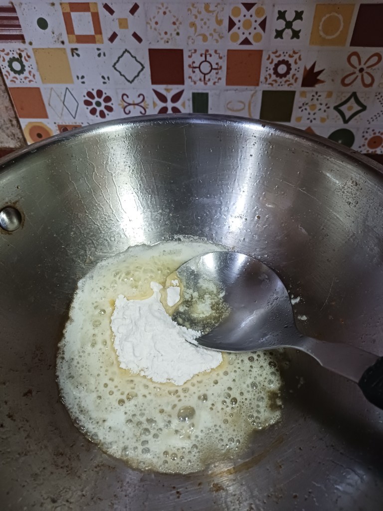 Step 6. Add 1 spoon of refined flour in this pan then.