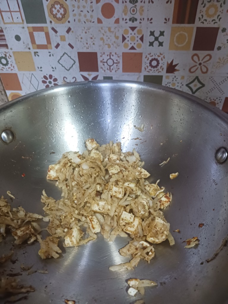 Ingredients: 1 serving spoon oil, cottage cheese, radish one bowl, bread,