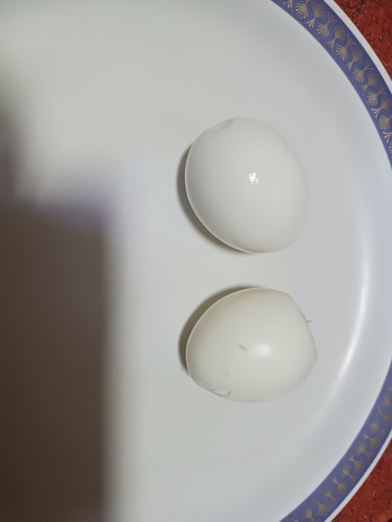 Step 1. Take 2 eggs and boil them. Peel them.