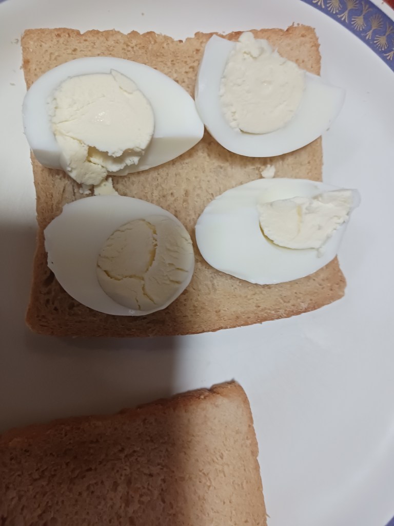 Ingredient: 2 eggs, 2 bread, black pepper, salt and a toaster.