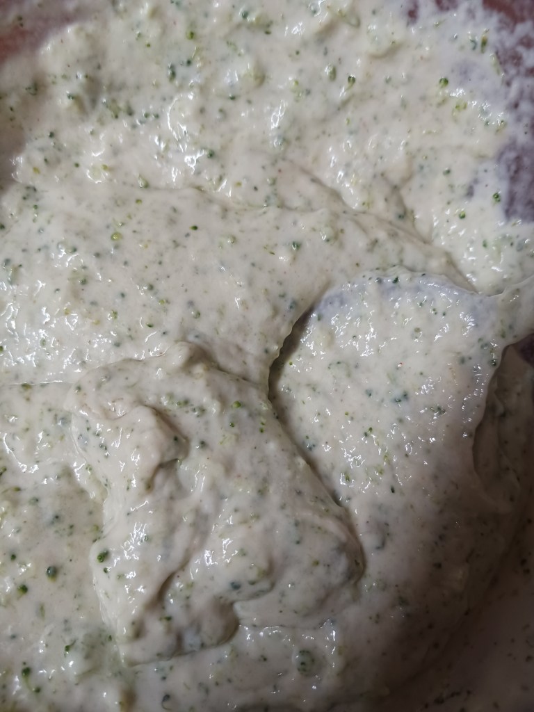 Ingredients: 1 broccoli, 2 cup refined flour, 1 cup cooking refined oil, baking powder, salt, red chilli, oregano, parsley, black pepper, milk.