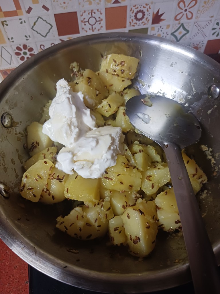 Ingredients: 4-5 Potatoes, cumin, milk cream 2 scoops.