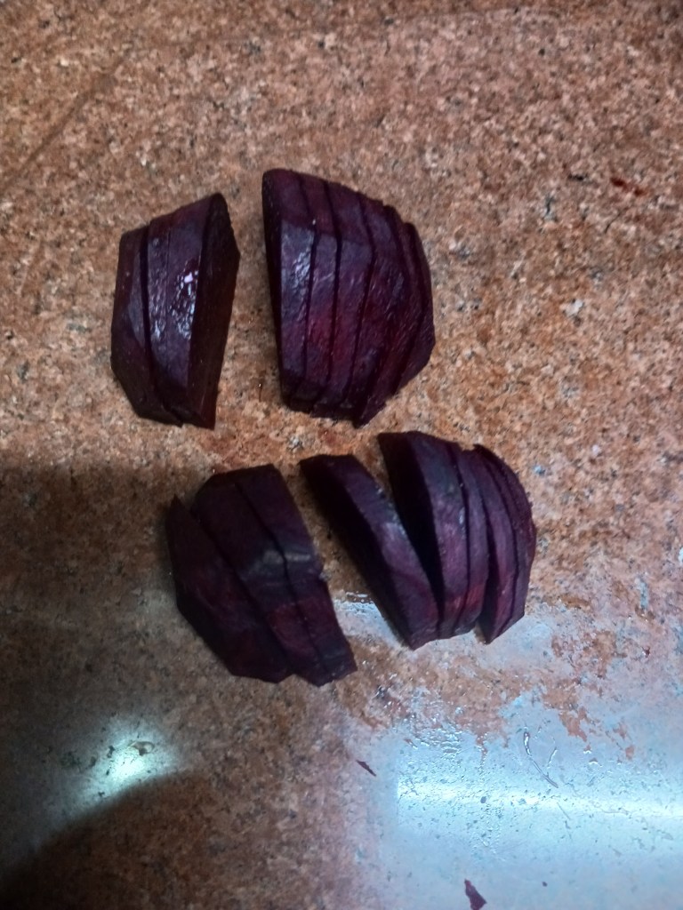 Step 3. Cut beetroot and fruits in a thin way.