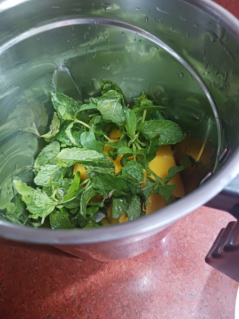 Step 3. Take a mixer grinder and grinde mango and mint.
