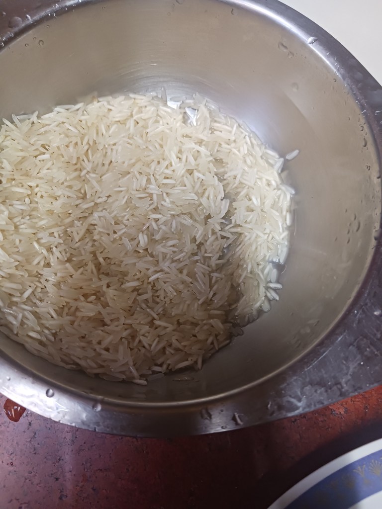 Step 3. Take a bowl of rice and wash it well.