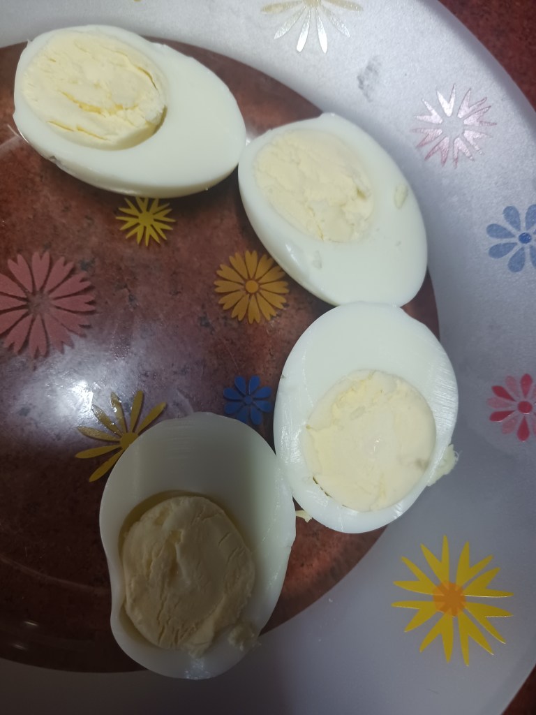 Step 2. Boil 2 eggs in the meantime. Cut into two parts each.