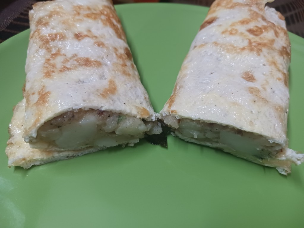 Step 21. Now add the potatoes mixture we made above in middle of omelette.