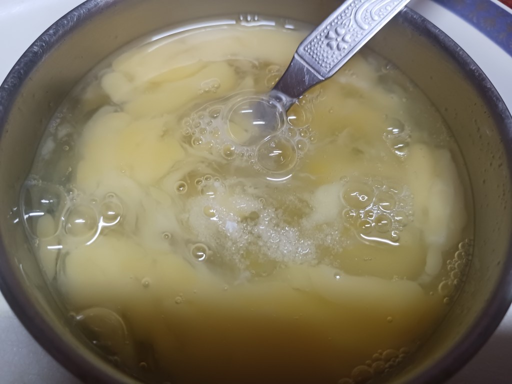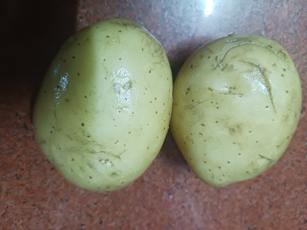 Step 3. Once the gas comes out of cooker, open cooker and take potatoes out, peel them off.
