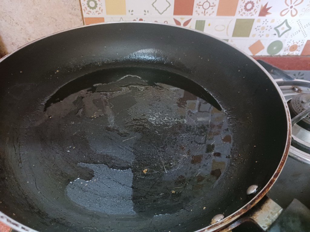 Step 7. Take one serving spoon of cooking oil in a frying pan.
