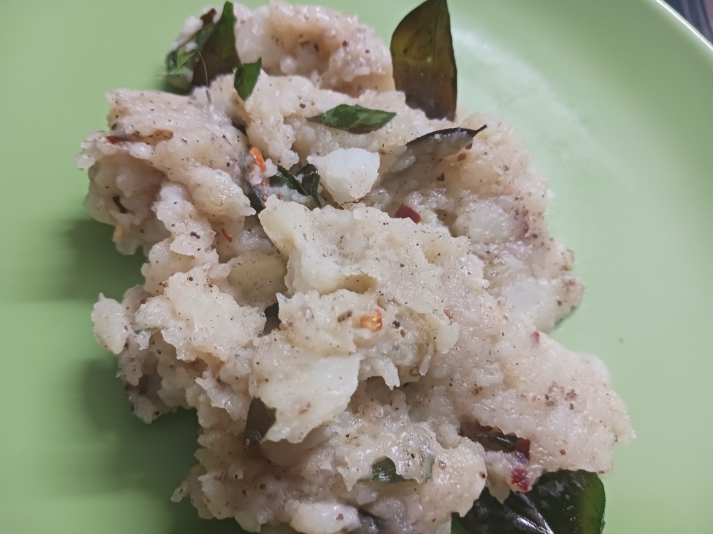 Ingredients: 2 Potatoes, 2 eggs, clarified butter/cooking oil, curry leaves – these are purely optional, salt, red chili flakes, black pepper. That’s It!